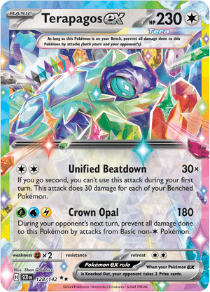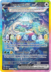 Más allá del hype galáctico, Corona Astral Pokémon TCG fue una delicia para coleccionistas con ojo fino y sensibilidad artística. El set reunió a ilustradores estrella como Sanosuke Sakuma, Naoki Saito, Kouki Saitou y Mitsuhiro Arita, cada uno aportando su estilo: desde trazos nostálgicos hasta composiciones que parecen sacadas de un sueño astral lleno de color y emoción. Las Special Illustration Rare fueron pequeñas joyas narrativas, y las cartas promocionales —como Terapagos ex en su versión Teracristal Astral o los entrañables Squirtle y Bulbasaur en acuarela— se convirtieron en piezas codiciadas desde el día uno por fans y coleccionistas exigentes.